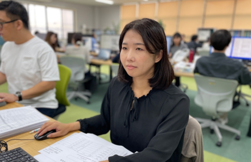 私たちの部署は、年齢や性別、入社経緯に関わらず、誰でもすんなり馴染める環境だと感じています。私自身も未経験からの中途入社でしたが、皆がそれぞれの業務に自立して取り組んでいるため、不要な足の引っ張り合いなどは一切ありません。今年私の部署に初めて新卒の男性社員が加わりましたが、女性ばかりのチームにも違和感なく溶け込んでいて、本人も自分に向いている仕事だと言っていて安心しました。課長として、チーム皆で切磋琢磨しながらお互いに高め合える環境を作っていきたいですね。それと、最近若い世代に刺激を受けることが多いんです。私が初めて新入社員研修で教育を担当した子で、今年6年目になる社員がプロジェクトのリーダーを任されているのを見て胸アツなのですが、同時に自分も負けていられないと感じています。