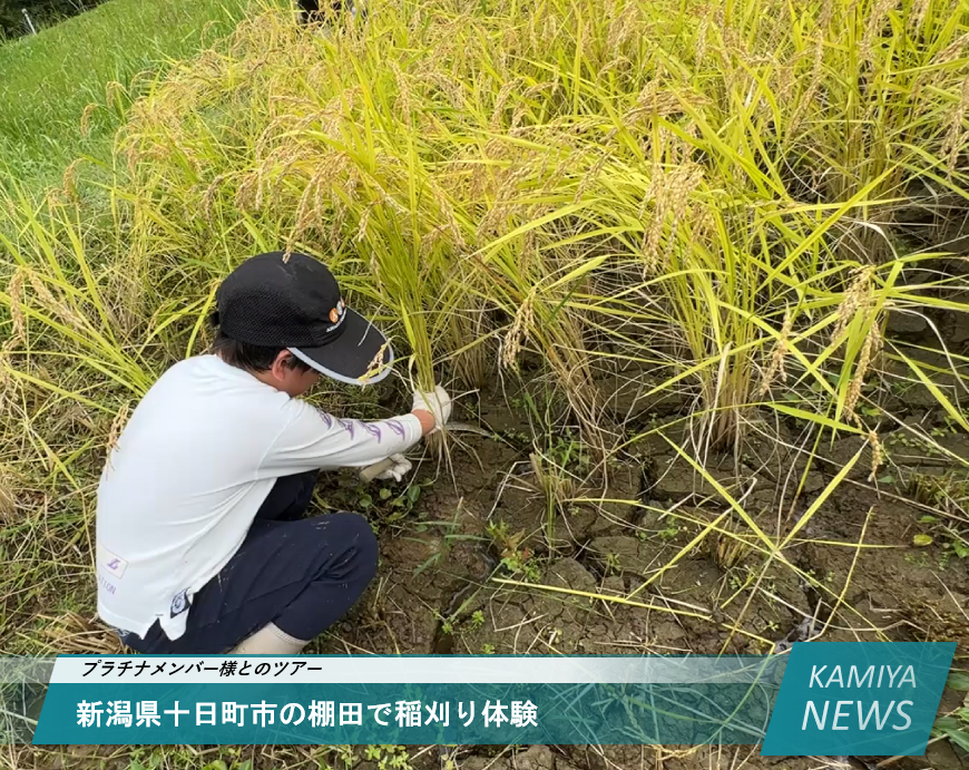 KAMIYAでは、新潟県十日町市の美しい棚田を守り、地域との交流を広げる「棚田バンク」という取り組みに協賛しています。