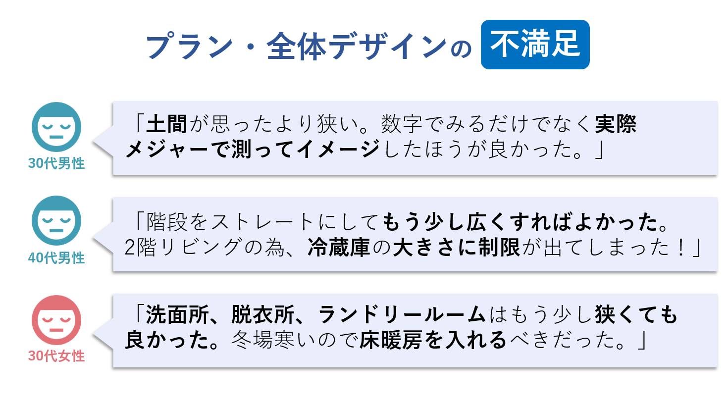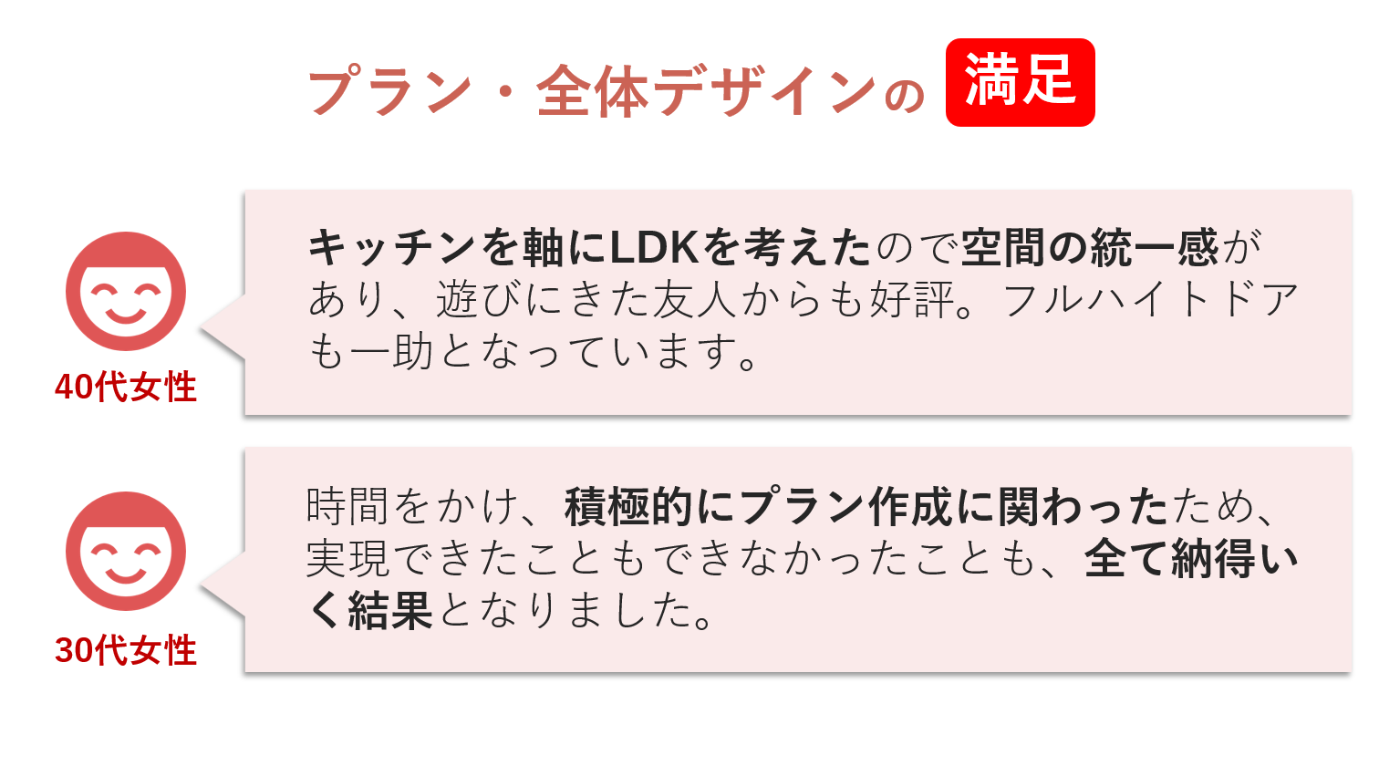 まずは最も多かった「プラン・全体デザイン」に満足された方の声です。
