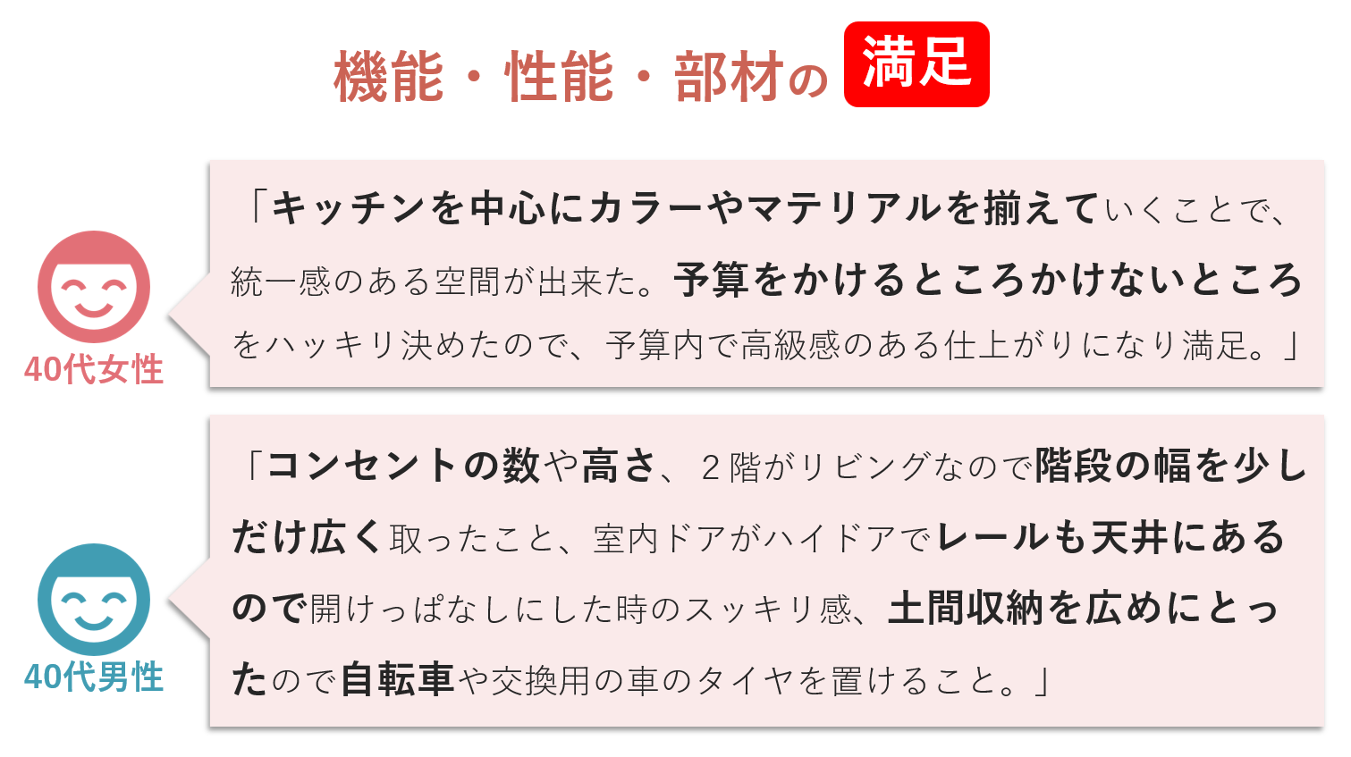 次のカテゴリーは「機能・性能・部材」です。まずは、満足された方の声です。