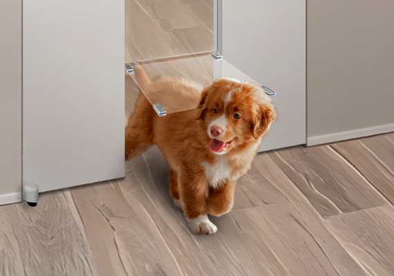 ポリカーボネート製のフラップは、ペットが通り抜けるときに負担がかからないようにS・Mサイズは厚さ1㎜、Lサイズは1.5㎜と薄いためペットにも優しく、快適な出入りを実現。また、しなる素材で挟み込みの危険もなく、不意な衝撃には外れるように設計されているため安心してお使いいただけます。