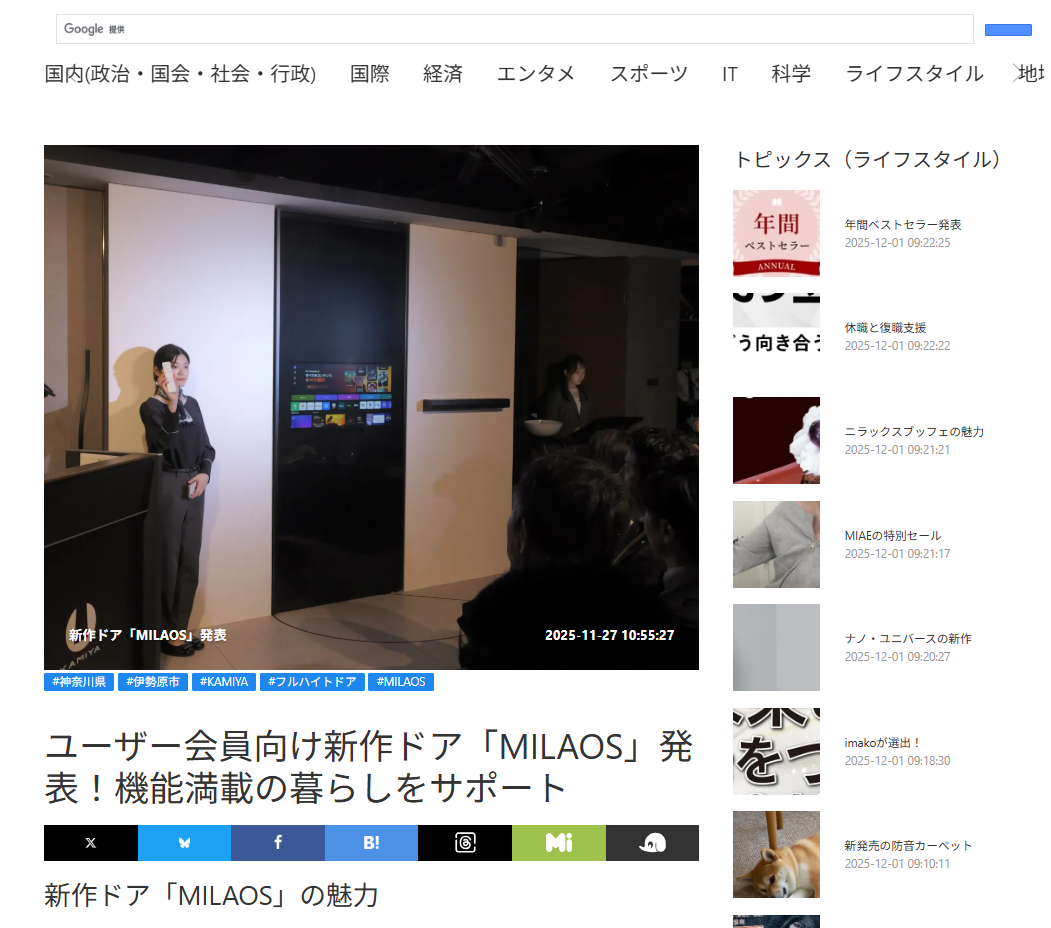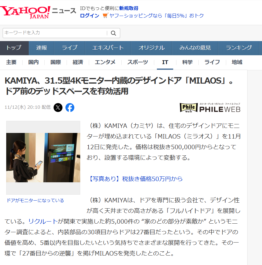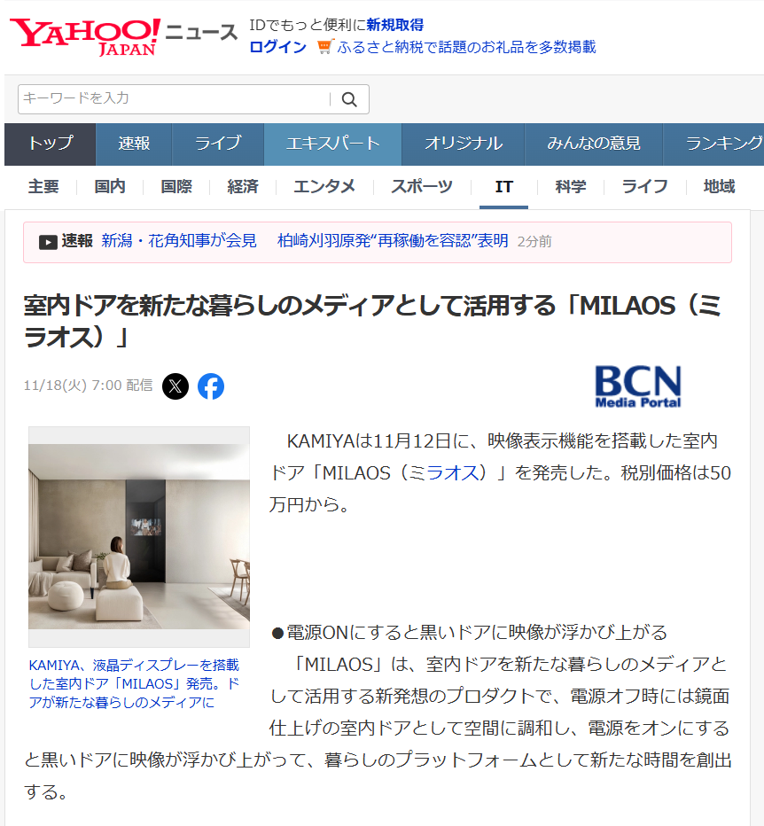 Yahoo! JAPAN ニュース 室内ドアを新たな暮らしのメディアとして活用する「MILAOS(ミラオス)」