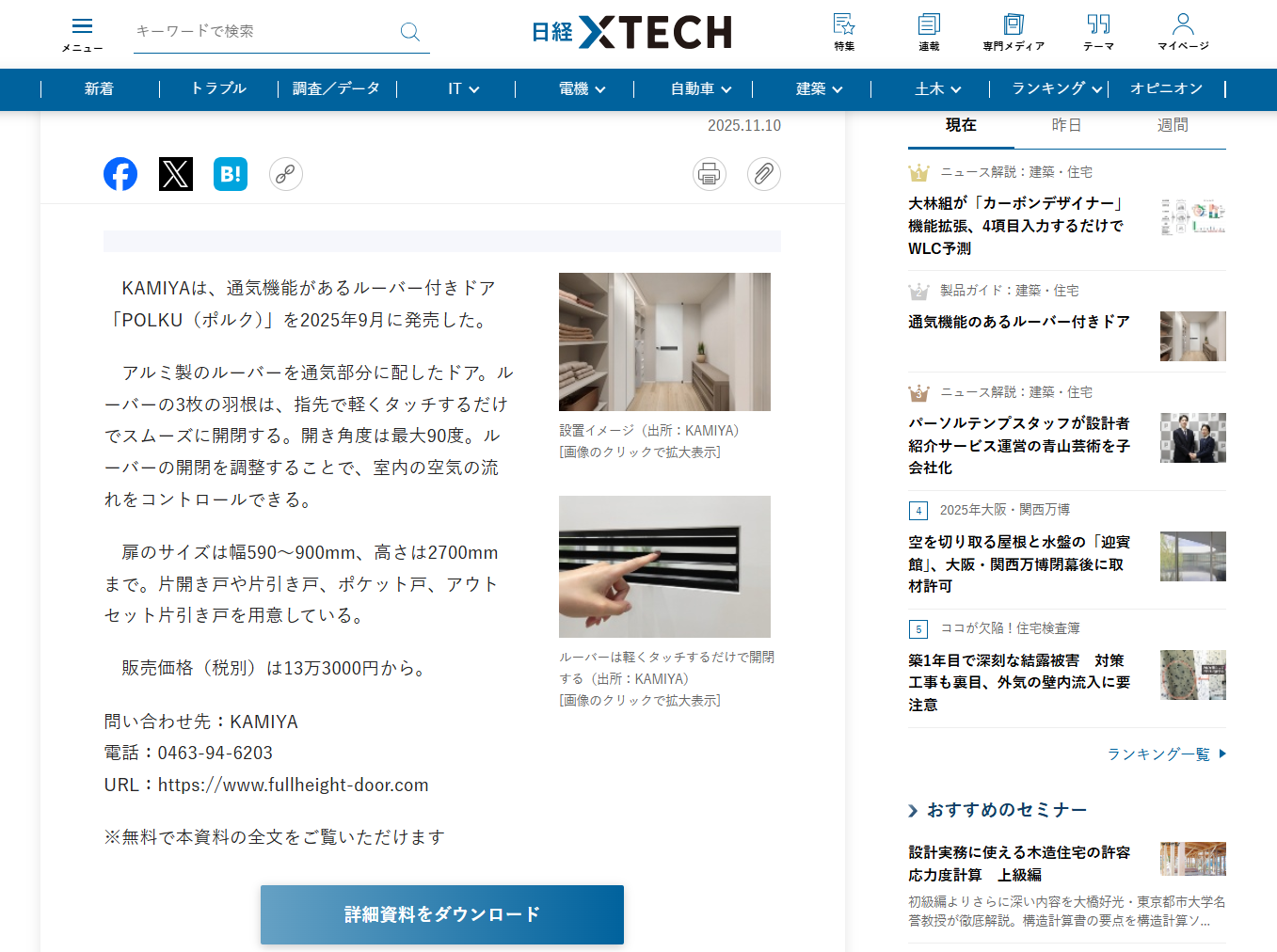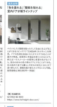 東京室内装飾新聞「黄金比採用の格子ドア フルハイトで発売」