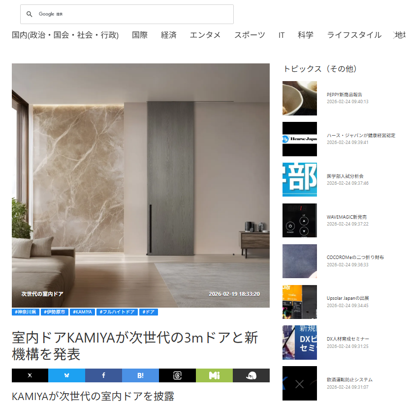 サードニュース 室内ドアKAMIYAが次世代の3mドアと新機構を発表
