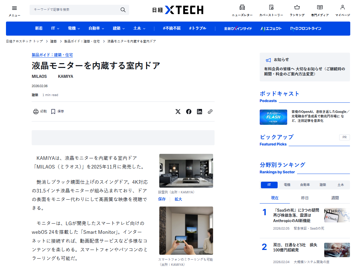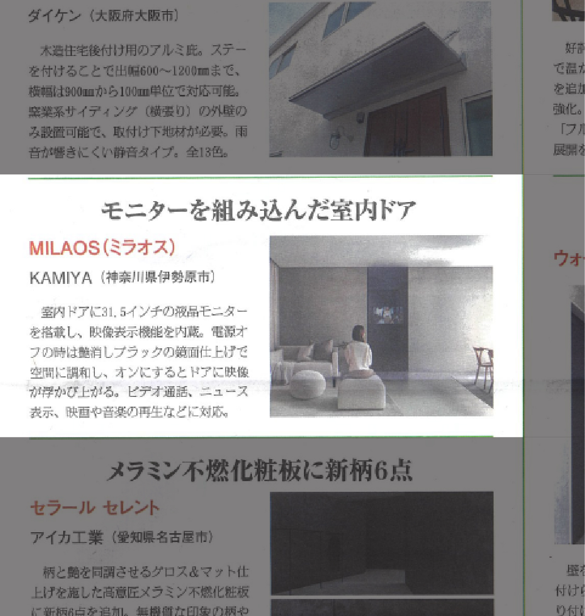 日刊木材新聞 映像・動画を映せる室内ドア「MILAOS(ミラオス)」を開発