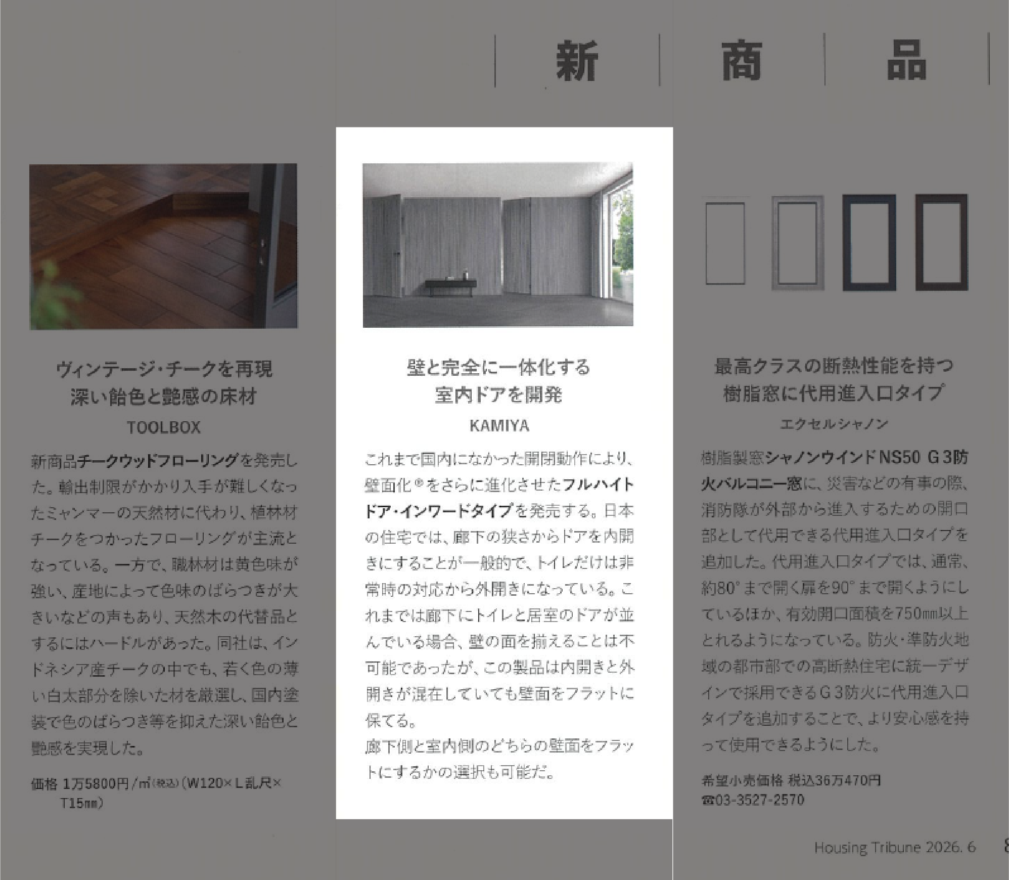 Housing Tribune 壁と完全に一体化する室内ドアを開発