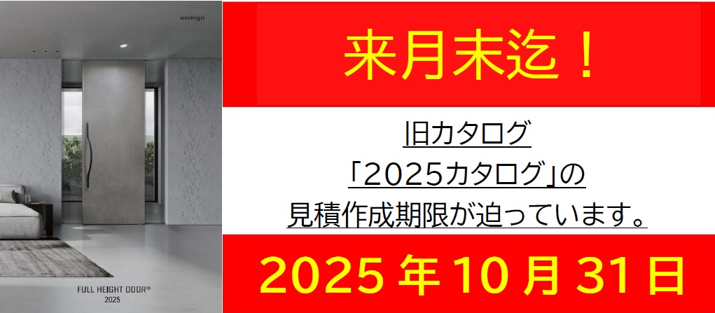 「2025カタログ」の仕様をご希望のお客様は10月31日迄に見積作成をお願いいたします。