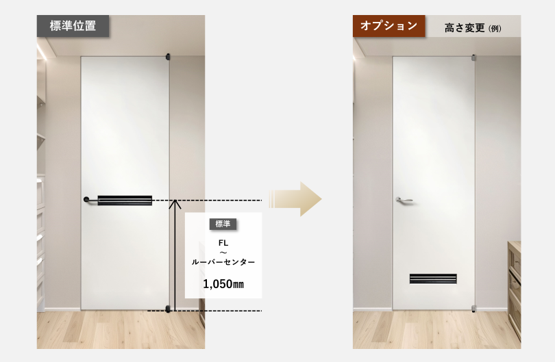 ルーバーの位置は、オプション対応にて変更が可能です。(扉1枚当たり+¥3,000)