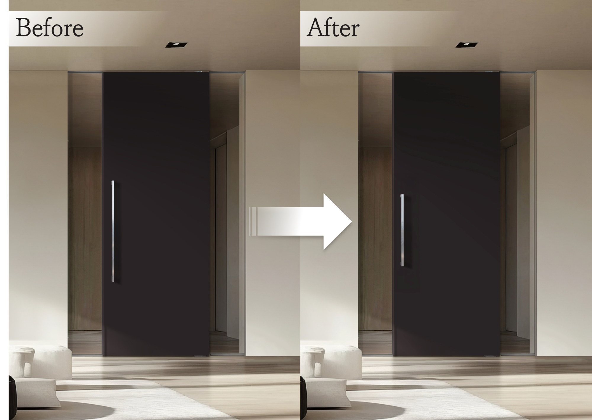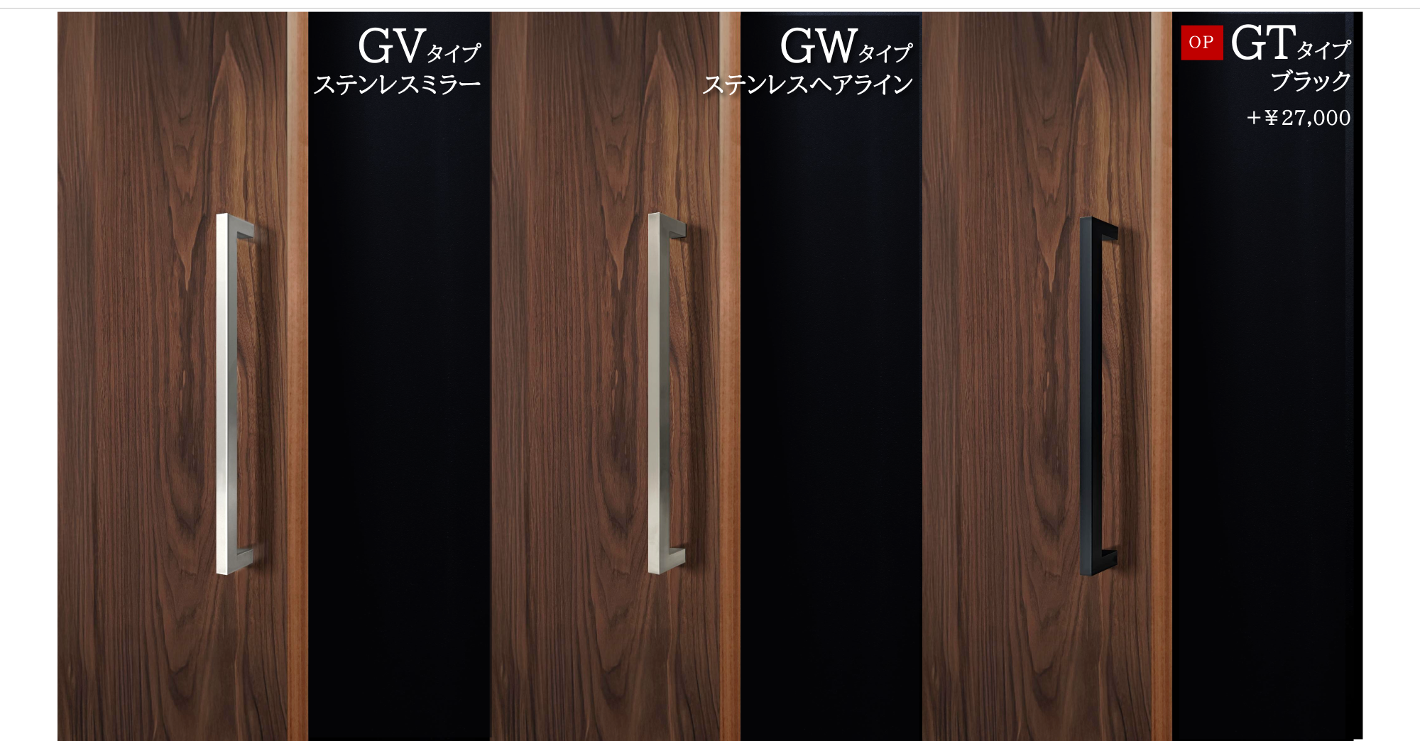 高級感のある大型ハンドルが全面ガラスの開放感を引き立て、より洗練された空間演出を実現します。