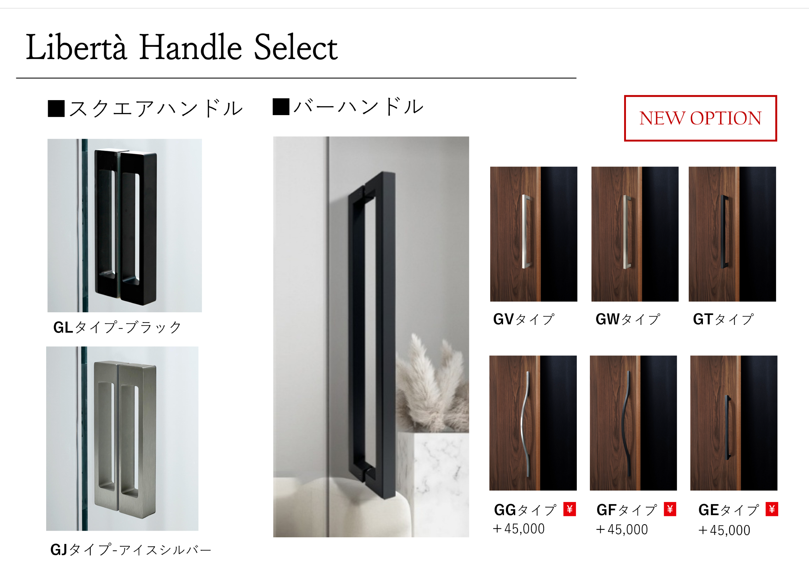 開放的な空間を生み出す全面ガラスドア「Libertà(リベルタ)」に、大型のバーハンドルがオプション設定されました。
